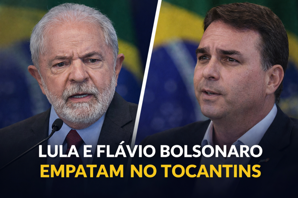 A corrida presidencial no Tocantins ganhou novos contornos de equilíbrio. Pesquisa Real Time Big Data divulgada nesta quarta-feira, 25 de março, mostra que o presidente Luiz Inácio Lula da Silva (PT) e o senador Flávio Bolsonaro (PL) aparecem em empate técnico nos cenários estimulados de primeiro turno testados no estado. O levantamento ouviu 1.600 eleitores entre os dias 23 e 24 de março, tem margem de erro de dois pontos percentuais e está registrado no TSE sob o número BR-00664/2026.